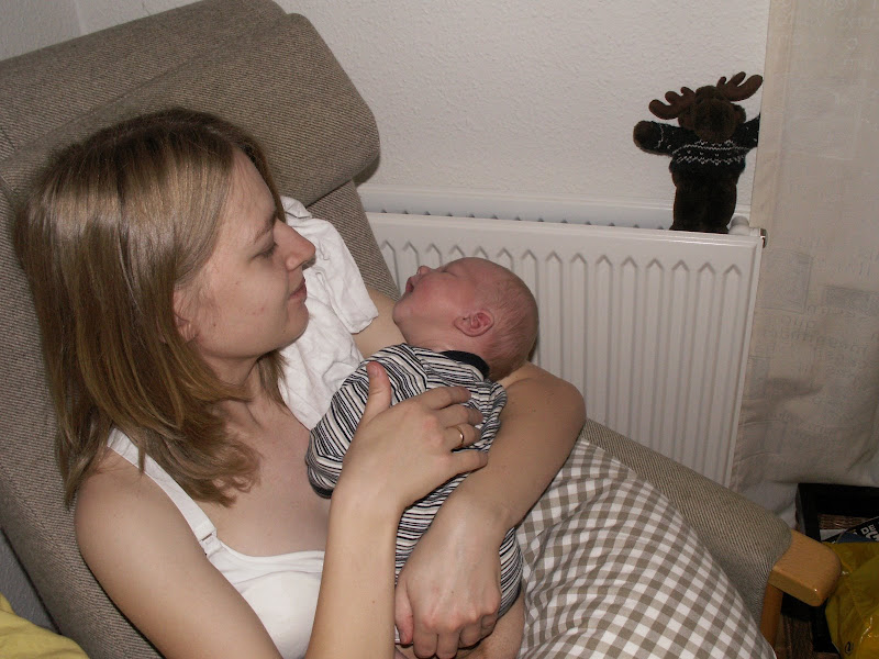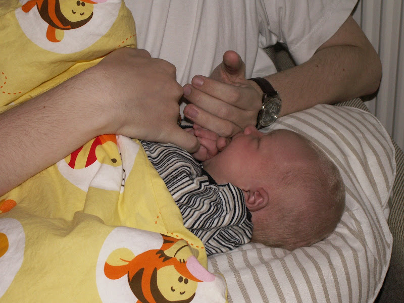 Lige inden han skulle ind til lægen var han sulten så mor måtte amme ham lidt, og da han skulle ind var han stadig ikke mæt. Derfor skreg han en del hos lægen, men da vi kom hjem fik han straks noget mad og faldt hurtigt til ro.