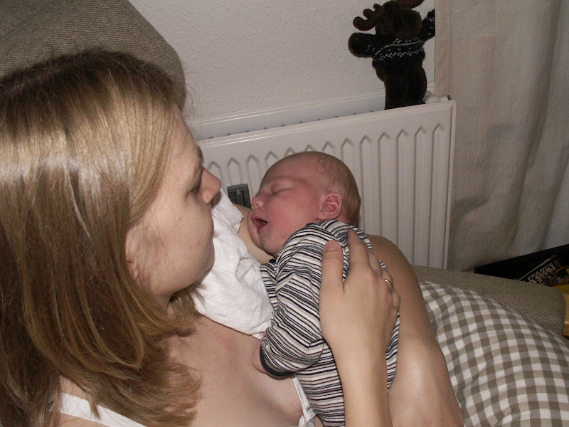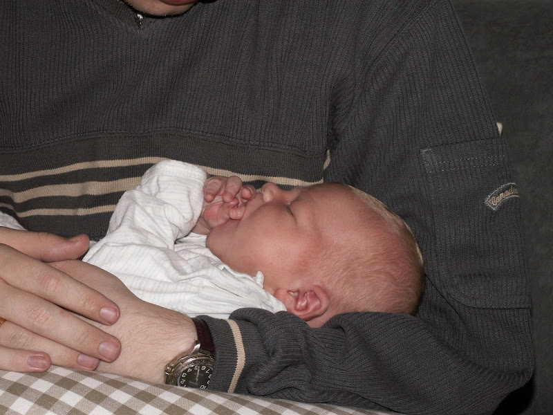 Sundhedsplejersken sagde i dag, at når han tog så godt på som han gjorde så gjorde det ikke noget hvis han fik lov at have en sut når han bare havde lyst til at ligge og sutte lidt. Vi købte inden han blev født nogle specielle sutter for nyfødte som minder mere om en rigtig brystvorte så han skal sutte på den på samme måde som når han bliver ammet.